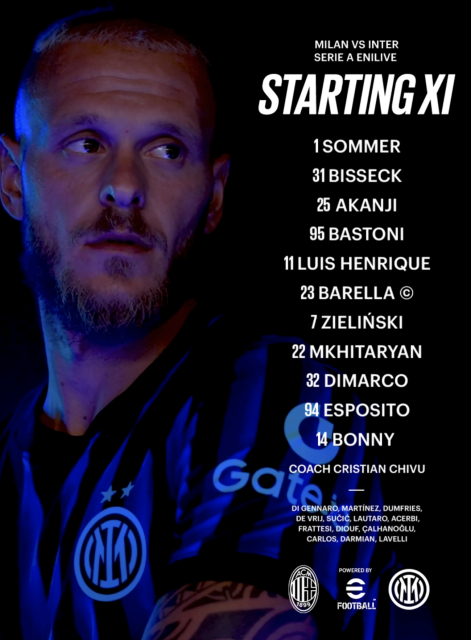 هاي كورة – أعلن كريستيان كيفو عن تشكيلة إنتر ميلان الرسمية لمواجهة ميلان في الجولة الثامنة والعشرين من الدوري الإيطالي.