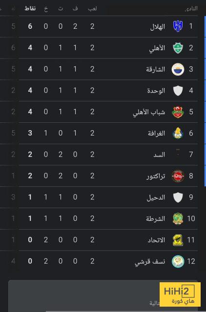 الاتحاد في المركز الحادي عشر وبدون نقاط حتى الآن، سجل هدفًا وحيدًا واستقبلت شباكه 3 أخرين.