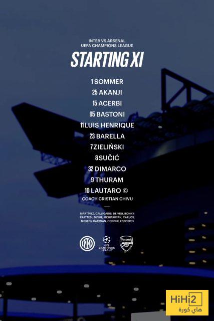 تشكيلة انتر ميلان للقاء أرسنال كالتالي: