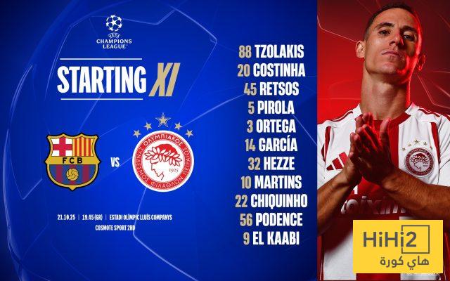 إليكم تشكيلة أولمبياكوس الرسمية للقاء برشلونة:
