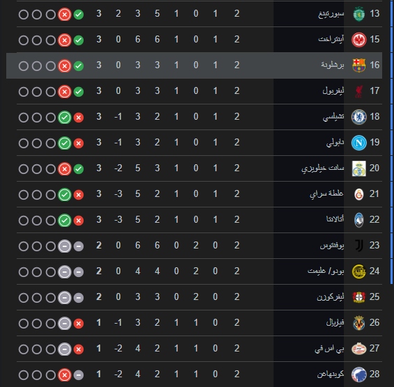 برشلونة في المركز 16 بجدول ترتيب دوري ابطال اوروبا