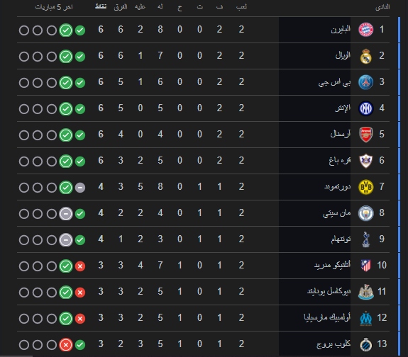 جدول ترتيب دوري الابطال قبل انطلاق الجولة الثالثة :
