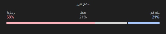 نسبة فوز برشلونة 58% ، التعادل 21% ، الخسارة 21% .