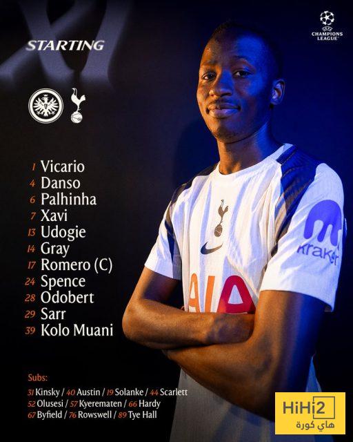 هاي كورة – أعلن المدرب توماس فرانك عن تشكيلة توتنهام الرسمية التي ستخوض مواجهة آينتراخت فرانكفورت في الجولة الثامنة من دوري أبطال أوروبا.