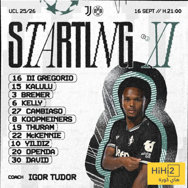 هاي كورة- أعلن ايغور تودور ، مدرب يوفنتوس عن تشكيلة فريقه الرسمية ضد بروسيا دورتموند ، مساء الثلاثاء، على ملعب السانتياغو برنابيو في الجولة الاولى من دور المجموعات ببطولة دوري ابطال اوروبا 2025-2026.