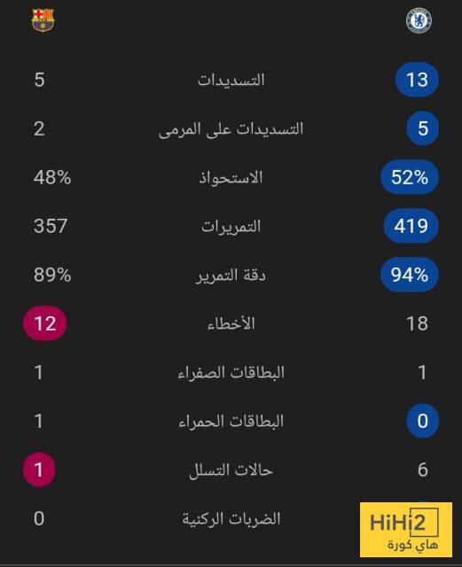 تشيلسي في المركز الرابع برصيد ١٠ نقاط بينما برشلونة في المركز الخامس عشر برصيد ٧ نقاط.