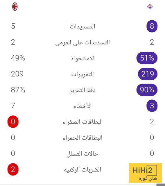 وجاءت إحصائيات الشوط لتسفر عن تفوق للفيولا أصحاب الأرض من حيث الاستحواذ على الكرة والتسديدات على المرمى.