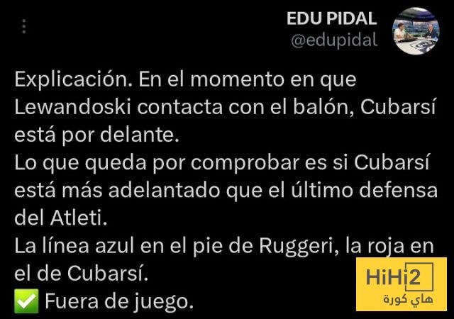“التفسير، في اللحظة التي يلمس فيها ليفاندوفسكي الكرة، يكون كوبارسي متقدمًا عليه”.