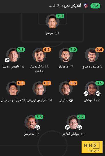 إليكم تقييم أتليتكو مدريد في الشوط الأول أمام برشلونة :