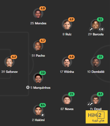 تقييم لاعبو باريس سان جيرمان في الشوط الاول: