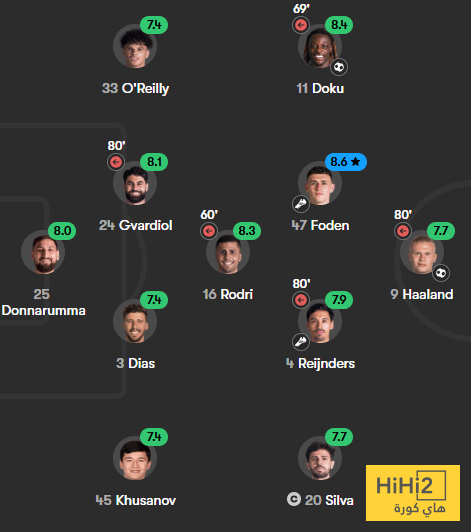 تقييم لاعبو مانشستر سيتي ضد نابولي :