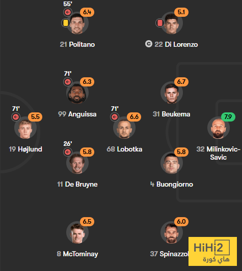 تقييم لاعبو نابولي بعد الهزيمة ضد مانشستر سيتي: