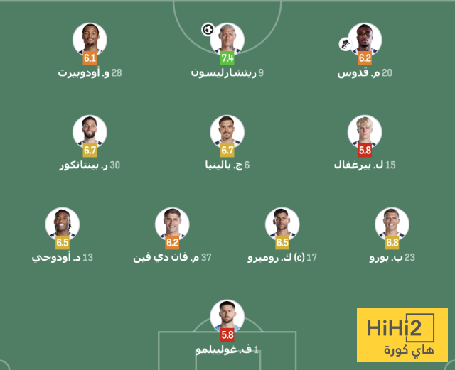 وبعد هذا الأداء في النصف الأول من المباراة، جاء تقييم لاعبي توتنهام عبر موقع سوفا سكور متواضع.