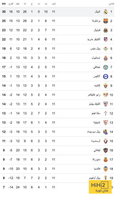 هاي كورة – استطاع ريال مدريد أن يحافظ على صدارته لجدول ترتيب الدوري الإسباني بعد نهاية الجولة الحادية عشرة .