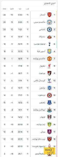 هاي كورة : بعد مرور 11 جولة من بطولة الدوري الإنجليزي الممتاز ، يتصدر نادي أرسنال جدول ترتيب البطولة منفردًا برصيد 26 نقطة ، فارق 4 نقاط عن أقرب منافسيه مانشستر سيتي صاحب المركز الثاني .