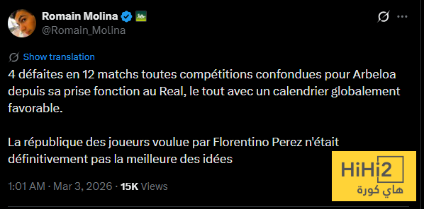 ” تلقى أربيلوا اربع هزائم في 12 مباراة في جميع المسابقات منذ توليه تدريب ريال مدريد على الرغم من جدول مباريات مريح عموما “