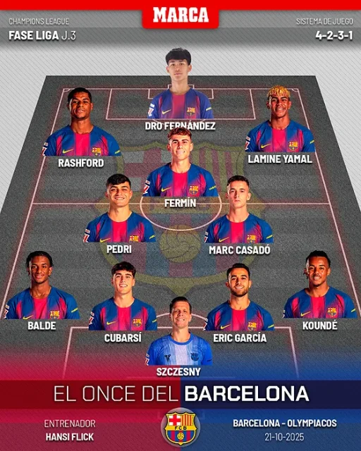 هاي كورة – أبدت جماهير برشلونة آراء متباينة بشأن التشكيلة الأساسية التي اختارها المدرب هانز فليك لمواجهة أولمبياكوس، اليوم، ضمن منافسات الجولة الثالثة من بطولة دوري أبطال أوروبا.