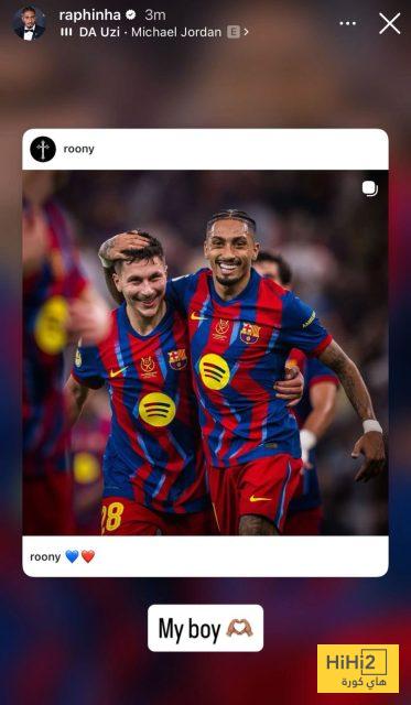 هاي كورة – وجه رافينيا دياز لاعب برشلونة رسالة دعم خاصة لـ موهوب الفريق و الوافد الجديد روني بردغجي بعد تألقه في مباراة اتلتيك بيلباو بالدوري الاسباني.