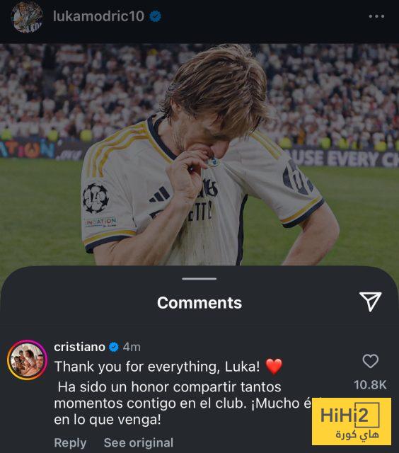 هاي كورة – أعرب النجم البرتغالي كريستيانو رونالدو عن امتنانه الكبير للاعب الكرواتي لوكا مودريتش بعد إعلان رحيله عن ريال مدريد، قائلاً: