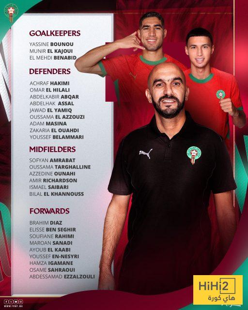 القائمة شهدت تواجد إبراهيم دياز نجم ريال مدريد، وياسين بونو حارس مرمى الهلال، وأشرف حكيمي لاعب باريس سان جيرمان.