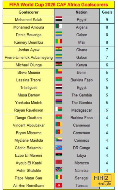 محمد صلاح يتصدر قائمة هدافي تصفيات إفريقيا المؤهلة لكأس العالم برصيد 9 أهداف (جولة واحدة متبقية).