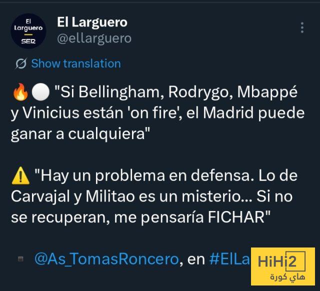 ” لكن هناك مشكلة في الدفاع ، وضع كارفخال وميليتاو ما زال لغزًا ، وإذا لم يتعافيا سأفكر جديا في التعاقد مع مدافعين “.