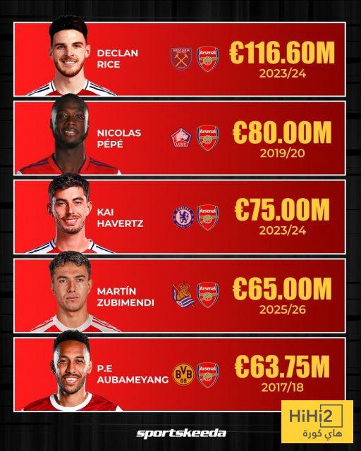 وبحسب إحصائية نشرها موقع “سبورتس كيدا”، فإن زوبيمندي حل في المركز الرابع ضمن أغلى صفقات “الغانرز”، متجاوزًا صفقة الجابوني بيير إيميريك أوباميانغ، ومتخلفًا عن ديكلان رايس، نيكولا بيبي، وكاي هافرتز.