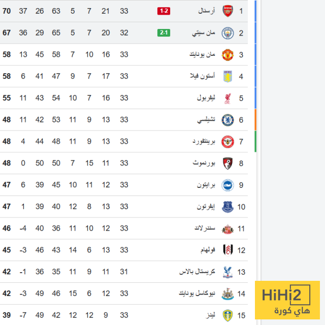 اليكم ترتيب البريميرليغ :