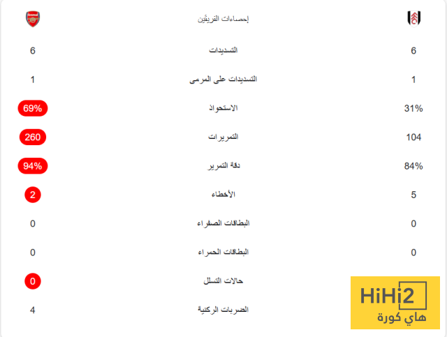 هاي كورة- انتهت احداث الشوط الاول من مباراة ارسنال امام نظيره فولهام، بالتعادل السلبي، على ملعب كرافن كوتيج، ضمن منافسات الجولة الثامنة من مسابقة الدوري الانجليزي.
