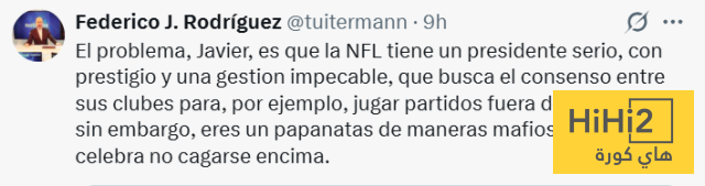 المشكلة يا خافيير هي أن اتحاد كرة القدم الأميركي لديه رئيس جدي يتمتع بمكانة وإدارة لا تشوبها شائبة، ويبحث عن التوافق بين أنديته، على سبيل المثال، للعب مباريات خارج البلاد . أنت، أحمق ثرثار ، أشبه برجال المافيا الذين يحتفلون لأنهم لم يتغوطوا في سراويلهم