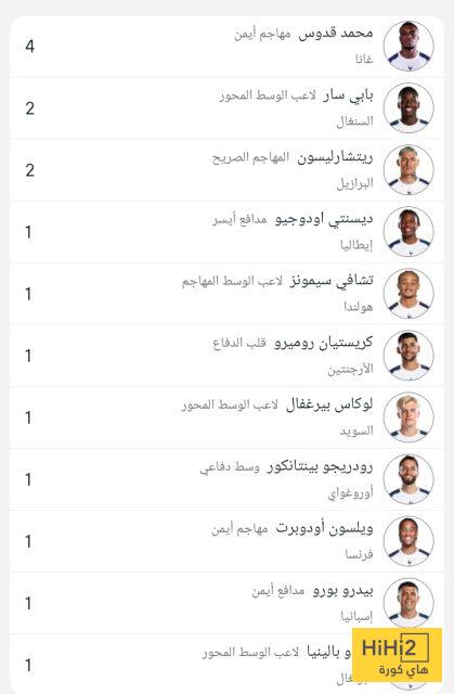 هاي كورة : يتصدر النجم ، محمد قدوس ، قائمة صناع أهداف توتنهام هوتسبير في الدوري الإنجليزي الممتاز هذا الموسم .