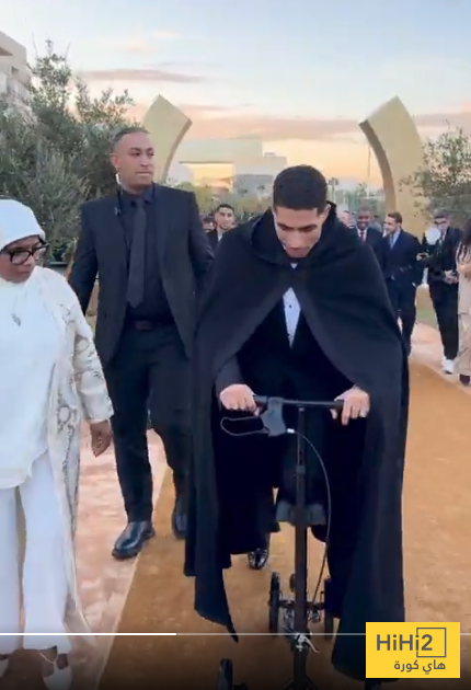و وصل المغربي اشرف حكيمي ، مدافع باريس سان جيرمان ، الى الحفل على دراجة خاصة تساعده في التنقل بسبب إصابته في قدمه اليمنى .