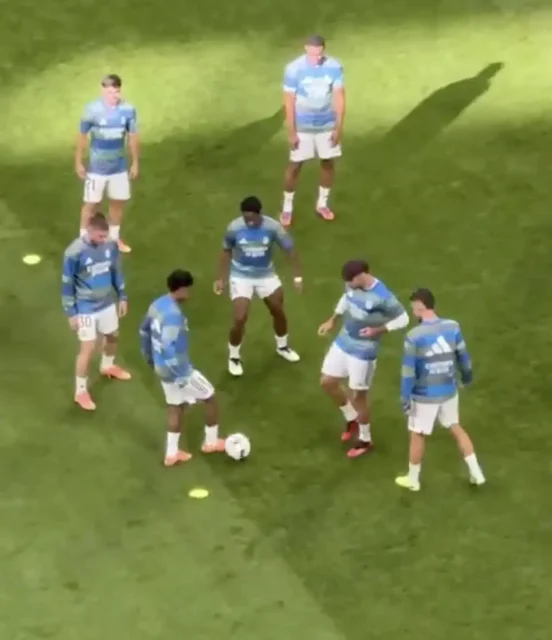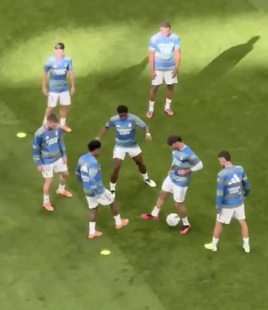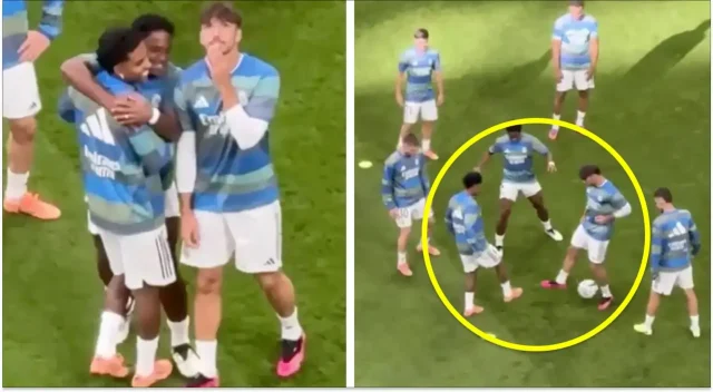 هاي كورة- شهدت تدريبات الإحماء لريال مدريد قبل مباراة الكلاسيكو الماضية أمام برشلونة لقطة طريفة، فخلال تمرين الروندو، واجه الجناح البرازيلي رودريغو زميله راؤول أسينسيو ، الذي حاول وفشل بشكل مذهل في انتزاع الكرة منه.