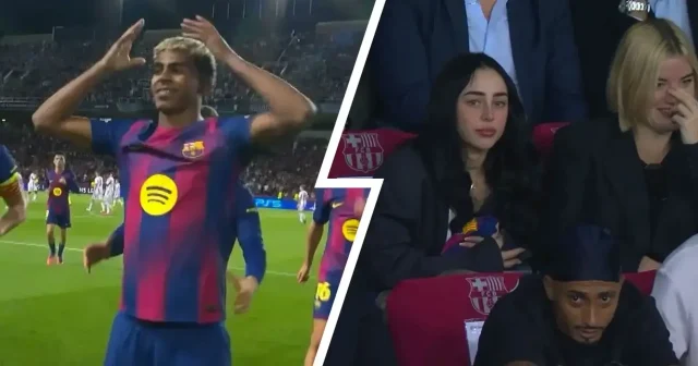 وبعد الهدف، شوهد يامال وهو يشير بيده إلى فمه، وهو ما يشير إلى وجود الكثير من الحديث السلبي عنه في وسائل الإعلام، قبل أن يتجه إلى صديقته ويحتفل معها من أرضية الملعب.
