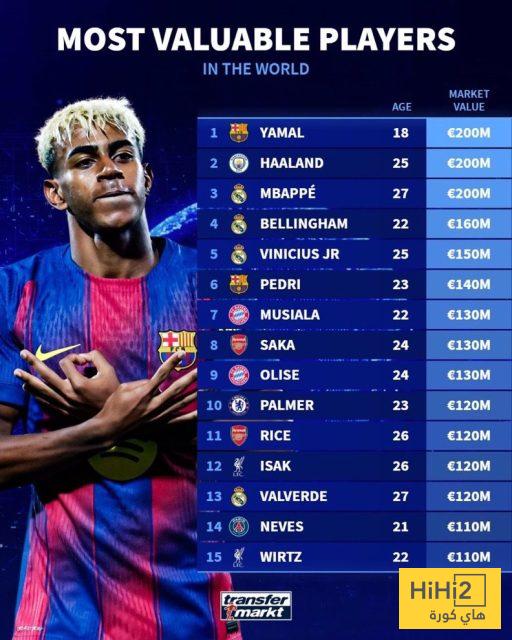 هاي كورة – نشر موقع Transfer Market آخر تحديث لقائمة أغلى 10 لاعبين في عام 2025 حيث تصدر الثلاثي لامين يامال ، ايرلينغ هالاند وكيليان مبابي بـ 200 مليون يورو .