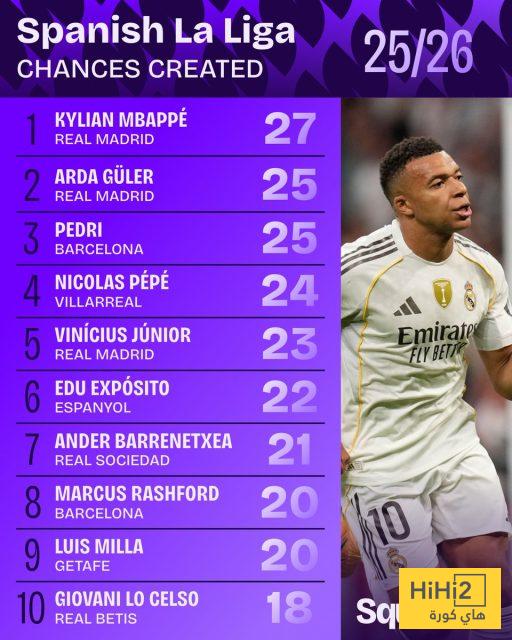 هاي كورة: يواصل النجم الفرنسي ، كيليان مبابي ، تألقه رفقة ريال مدريد في الدوري الإسباني حيث تصدر قائمة أكثر اللاعبين صناعة للفرص في الموسم الحالي برصيد 27 فرصة، فيما جاء الشاب التركي ، أردا غولر ، في المركز الثاني برصيد 25 فرصة .