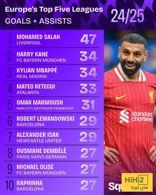 هاي كورة – في ختام موسم 2024-2025، تصدّر النجم المصري محمد صلاح قائمة أكثر اللاعبين مساهمة بالأهداف (تسجيلًا وصناعة) في الدوريات الخمس الكبرى، بعدما ساهم بـ47 هدفًا مع ليفربول، متفوقًا بفارق كبير عن أقرب منافسيه.