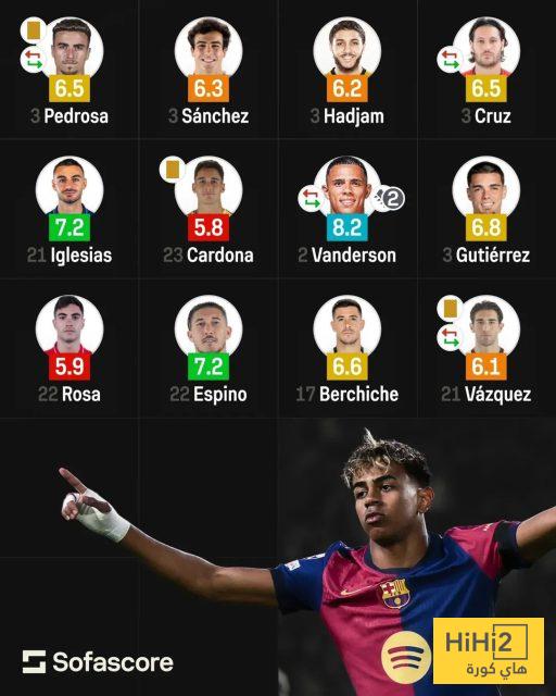 هاي كورة- نشر موقع “سوفاسكور” تقييمات جميع الأظهرة الذين واجهوا لامين جمال نجم برشلونة الشاب خلال الموسم الحالي.