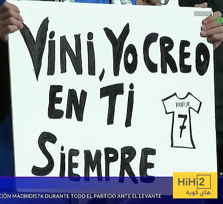 هاي كورة- رفع احد جماهير البرنابيو لافته لدعم اللاعب البرازيلي فينيسيوس جونيور قبل مواجهة موناكو التي ستنطلق بعد دقائق ضمن منافسات الجولة السابعة في دوري ابطال اوروبا .