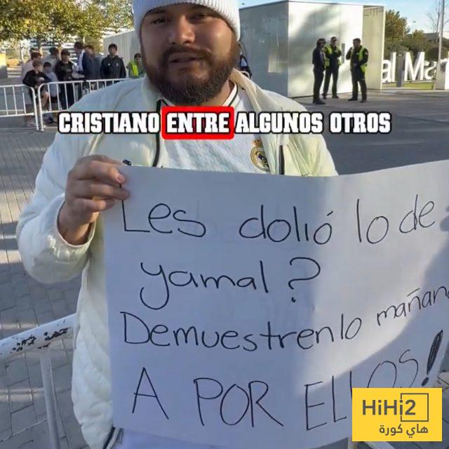 هاي كورة – قام أحد مشجعي ريال مدريد بانتظار اللاعبين في طريق مرور سياراتهم للمدينة الرياضية ، رافعا لافتة كتب فيها ” هل جرحكم ما قاله لامين يامال ، إذن عليكم الرد غدا ، عليكم أن تنالوا منهم ” .