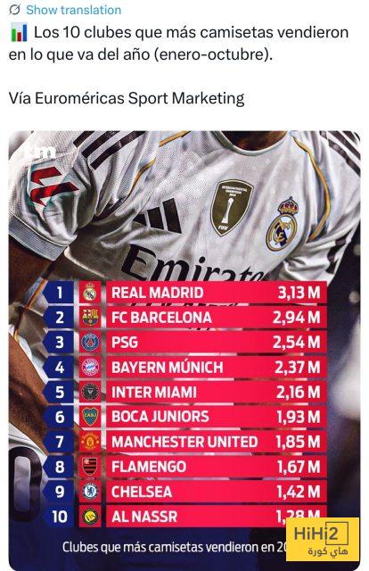 هاي كورة : في قائمة تصدرها ريال مدريد ويليه برشلونة في المركز الثاني ، تواجد فيها نادي النصر السعودي في المركز العاشر عالميًا لأكثر الأندية مبيعًا للقمصان متجاوزا كل أندية القارة الآسيوية وكذلك بعض كبار أوروبا .