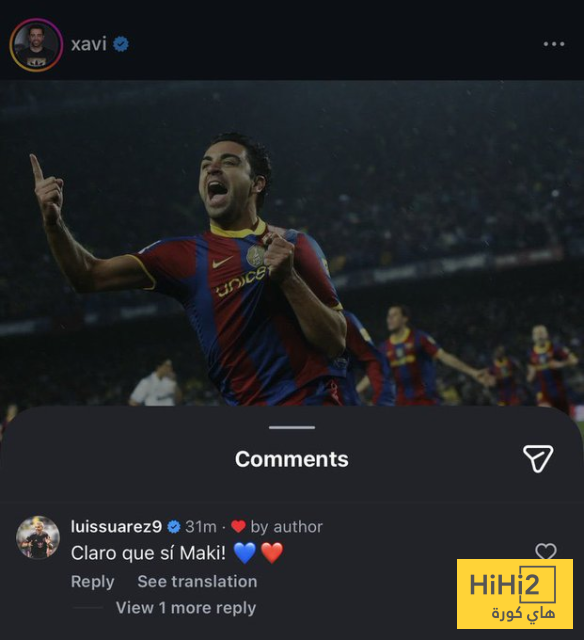 وتفاعل لويس سواريز مع منشور تشافي وعلق قائلا : ” بالتأكيد يا ماكي! “.