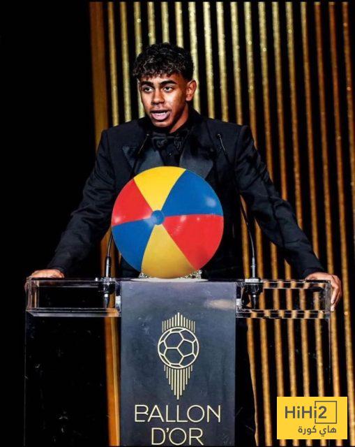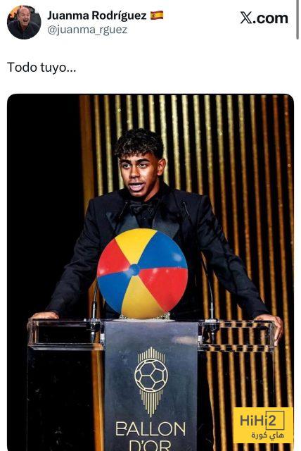 الصحفي خوانما رودريغيز كتب في حسابه قائلا ” أنها لك ” وارفق صورة لامين مع الكرة الشاطئية .