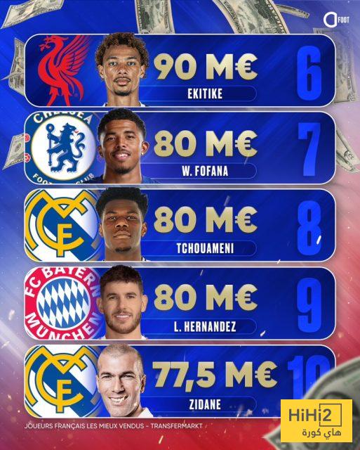 هاي كورة: ضمن قائمة أغلى الانتقالات في تاريخ اللاعبين الفرنسيين، جاء هوجو إيكيتيكي في المركز السادس بعد انضمامه رسميًا إلى نادي ليفربول.
