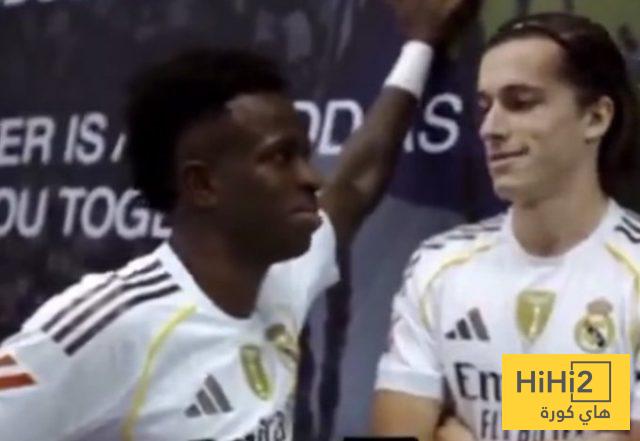فينيسيوس جونيور ، لاعب الريال ، توجه الى كاريراس و الحارس كورتوا قبل الخروج من النفق مع انطلاق الشوط الثاني للمباراة وقال لـ الفارو :
