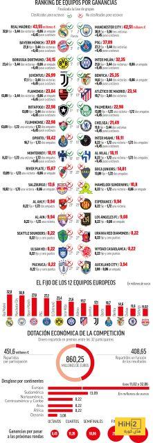 وتوزع “فيفا” جوائز مالية ضخمة تتجاوز قيمتها 860 مليون يورو في النسخة الأولى بالنظام الجديد، إذ يحصل كل نادٍ متأهل لدور الـ16 على 6.45 مليون يورو، فيما تبلغ جائزة البطل 34.3 مليون.