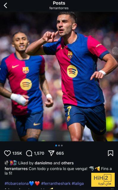 فيران توريس لاعب برشلونة علق على الفوز بمنشور عبر حسابه الرسمي على انستغرام قائلا: