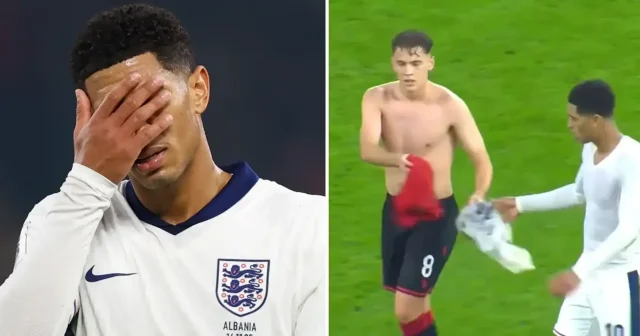 هاي كورة- قدّم جود بيلينغهام، لاعب خط وسط إنجلترا ، إحدى أكثر اللحظات غير المتوقعة في مباراة منتخب بلاده ضد ألبانيا في تصفيات كأس العالم، فمع انتهاء الشوط الأول، تبادل نجم ريال مدريد قميصه مع كريستيان أسلاني ، لاعب ألبانيا ، في لفتة تُخصص عادةً لصافرة النهاية.