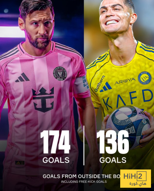هاي كورة – يتفوق ليونيل ميسي على كريستيانو رونالدو ، على صعيد تسجيل الأهداف من خارج منطقة الجزاء ، بما في ذلك الركلات الحرة .