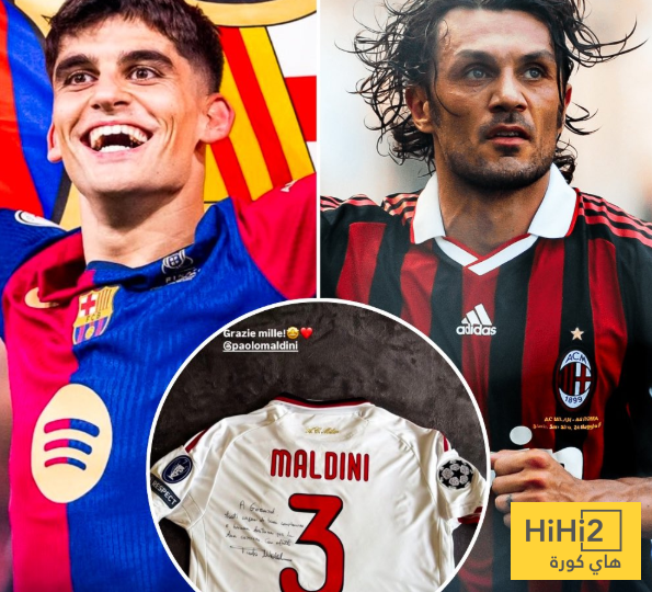 هاي كورة – أرسل النجم الأسطوري باولو مالديني قميصه الشهير لنادي ميلان ، موقعاً منه، إلى جيرارد مارتين ، مدافع برشلونة .